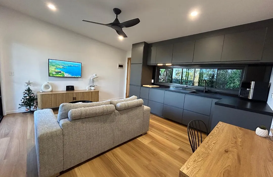 Our Treehouse Near Mooloolaba Villa tilbyder en indkvartering inden for 15 minutter i bil fra Sunshine Coast lufthavn. Den består af 1 værelser, 1 badeværelser og et udstyret køkken.